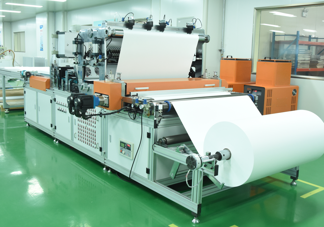 公司購進(jìn)韓國三星全自動(dòng)無隔板空氣過濾器折紙生產(chǎn)線,確保產(chǎn)品質(zhì)量符合GB/T13554-2020《高效空氣過濾器》、GB/T14295-2019《空氣過濾器》。該機(jī)器1、采用機(jī)、電、氣一體化全自動(dòng)控制,生產(chǎn)效率高,運(yùn)行穩(wěn)定可靠;2、操作盤采用12寸以上電腦控制界面,清晰、直觀、操作方便;3、上料用氣脹軸,并有張力制動(dòng)系統(tǒng),可自動(dòng)控制來料的張力;4、機(jī)器帶有分切修邊裝置;5、機(jī)器折高在控制界面上任意調(diào)節(jié),無需更換滾筒,伺服控制系統(tǒng)可保證折紙的平整度;6、涂膠的連續(xù)、斷續(xù)、雙面、單面、自動(dòng)、手動(dòng)、交叉等七項(xiàng)功能可方便選擇;7、每一個(gè)膠嘴有一個(gè)獨(dú)立開關(guān),可以在控制界面上自由開關(guān);8、系統(tǒng)速度通過電腦能自動(dòng)匹配,可方便選擇;9、收波機(jī)構(gòu)折高調(diào)節(jié)及前后移動(dòng),調(diào)整方便可靠;10、輸送機(jī)構(gòu)可通過電腦調(diào)節(jié)使輸送速度與系統(tǒng)同步;11、使用日本松下的伺服馬達(dá)傳輸系統(tǒng)保證折出來的紙會(huì)非常的平;12、膠機(jī)的流量和折紙的速度是成正比的,要求折紙速度增加時(shí),膠水的流量也會(huì)一起增加,不用人為再去控制膠量的大?。?3、要求在不同的生產(chǎn)速度下,膠水的干濕程度可以通過操作系統(tǒng)來控制;14、折紙與輸送過程具有同步性。